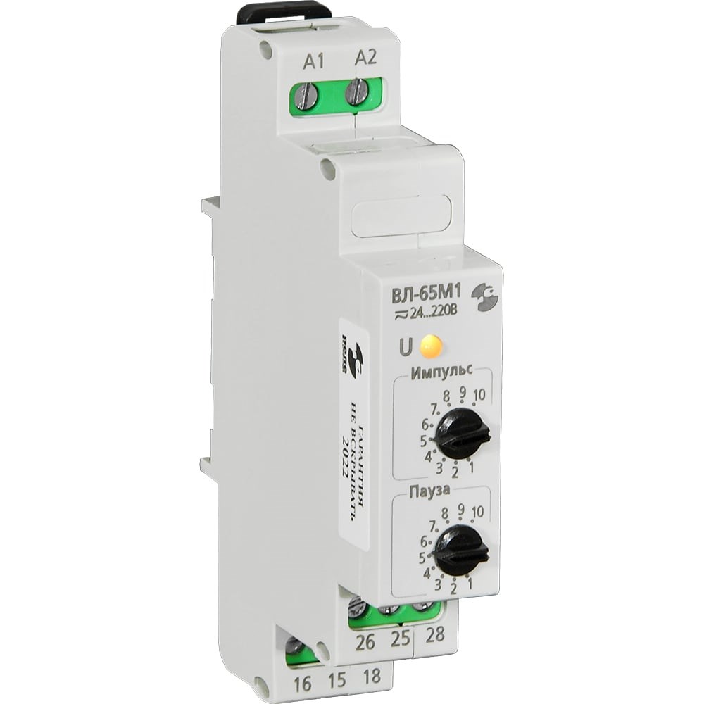 Реле времени Реле и Автоматика, ВЛ-65М1 0,1с-30ч, 24-220В, 50Гц, пост A8222-34125889 отличается широким выбором установки длительности интервалов импульса/паузы - от 0,1с до 30час. Реле начинает работать с паузы. Выбор диапазона выдержек времени паузы и импульса производится с помощью 8–ми секционного DIP–переключателя и двух регуляторов. С помощью нижнего регулятора и DIP–переключателей 1...4 устанавливается длительность паузы, с помощью верхнего регулятора и DIP–переключателей 5...8 устанавливается длительность импульса.
