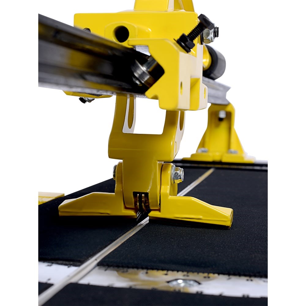 Рельсовый плиткорез МастерАлмаз 1200 мм 10502625 подходит для резки всех типов плитки, толщиной от 3 до 15 мм, гарантией этому является прочная направляющая. Рукоятка имеет сверхпрочные лапки для деликатного разлома на разной ширине плитки. Благодаря механизму каретки, оснащенной подшипниками, плиткорез имеет плавный ход, что позволяет выполнять более точную безошибочную резку. Дополнительно для контроля реза, установлена лазерная указка. С помощью дополнительных опор, расположенных с двух сторон основания, удобно работать с плиткой большого формата. Откидная боковая рабочая зона с линейкой, позволяет позиционировать плитку под разным углом. Плиткорез оснащен режущим роликом на подшипнике, с большим ресурсом реза. Для предотвращения скольжения плитки и комфортного разлома на рабочей поверхности стола, имеется широкое полиуретановое покрытие.