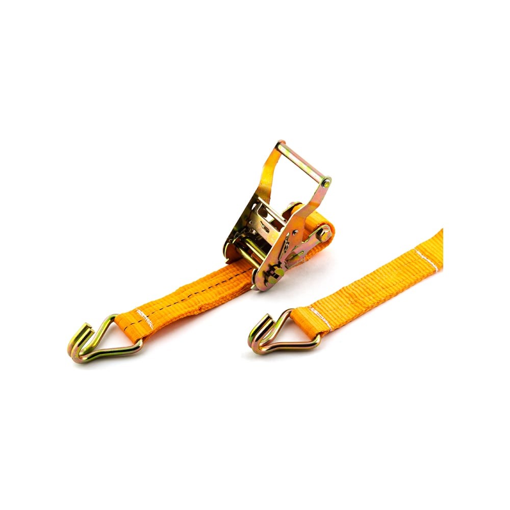 Ремень крепления груза ТОП АВТО ПРО, 38мм ПОЛИЭФИР, 1500/3000 кг, 6м TOPAUTO ПРК156 представляет собой удобное средство для закрепления транспортируемых грузов. Для зацепления используются парные крюки из прочной стали. Храповик легко стягивает ремень.