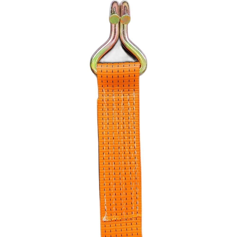 Ремень стяжной короткая часть с крюком 10тн ширина 75мм, длина вместе с крюком 43см. Обратите внимание: короткая часть ремня с крюком продается без трещетки и без длинной части, ее можно приобрести отдельно либо выбрав полный комплект ремня. Стяжку с храповиком в основном используют для крепкой и быстрой фиксации грузов при их перевозке на транспорте различных видов. Основу ремня составляет текстильная полиэстеровая лента, которая надежно закрепляет любой груз, не повреждая и не деформируя его и храповый механизм для затяжки и утяжки груза для устойчивой фиксации. Материя стяжного ремня достаточно устойчива к воздействию жестких погодных условий, перепада температур, агрессивной среды и химических веществ, а также легко чистится и не истирается, что делает это приспособление для крепления грузов простым в эксплуатации. Подходят такие ремни для различных видов грузов - листового металла, пиломатериалов, мебели и других. Такелажные крепежные ремни для груза изготавливаются в России. Стяжки груза бывают- неразъемные кольцевые (представляет собой текстильную ленту с прикрепленным храповиком) и разъемный или двухкомпонентный (один конец ленты с крюком, другой с храповым механизмом). Стропа ленточная. Ремень стяжной с храповым механизмом и крюками. Утяжка груза. Ремни стяжные используются вместе с строп-косточкой для крепления на эвакуаторе.