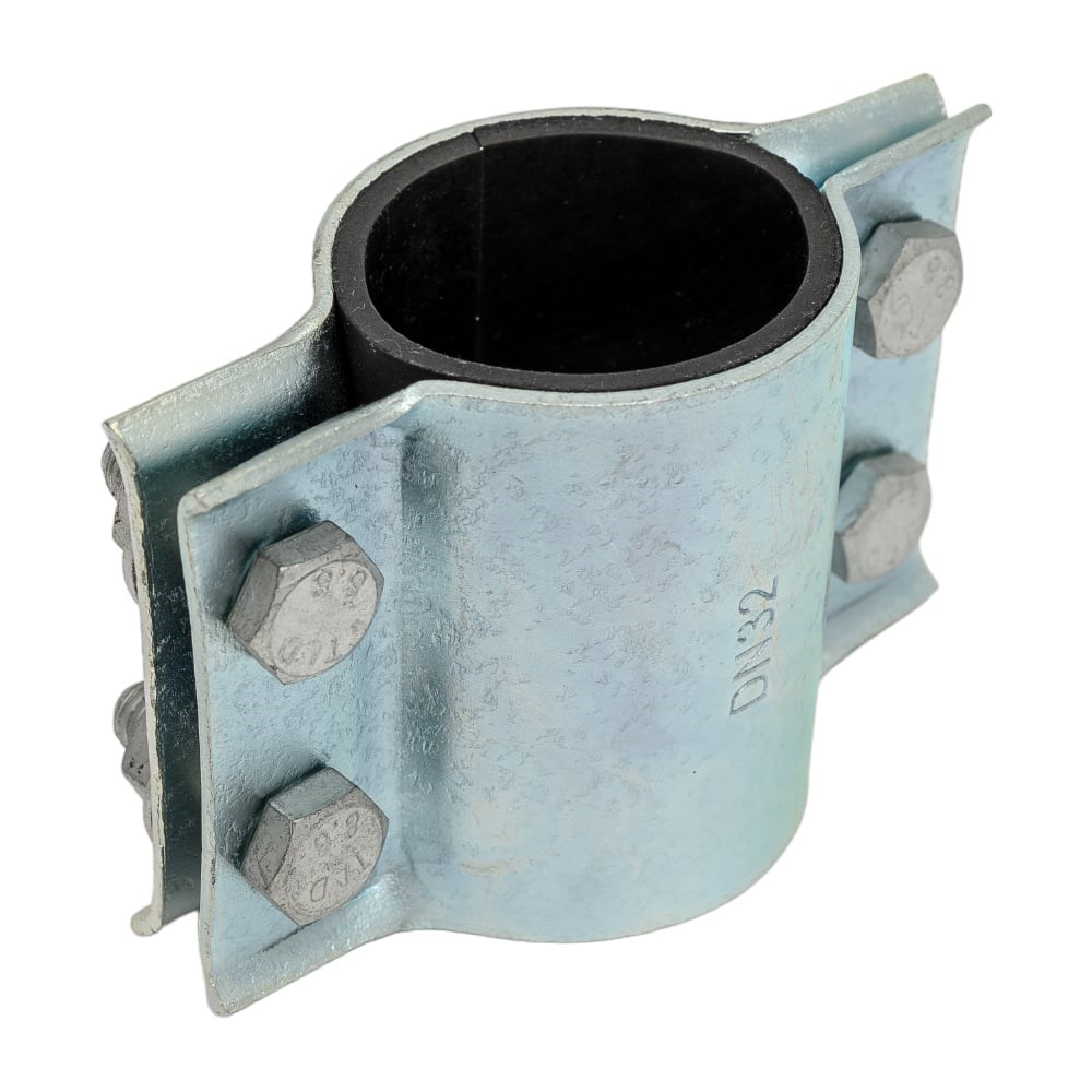 Хомут ремонтный оцинкованный 2-составной АТКА предназначен для устранения течи из трещин и свищей, образующихся на трубопроводах поврежденных коррозией или вследствие механических повреждений Хомут состоит из двух полумуфт, листового уплотнения и крепежного комплекта. Полумуфты изготавливаются методом штамповки из листовой стали. Для прочности полумуфты имеют ребра жесткости. Для DN 15- DN 40 уплотнение изготавливается из гладкой резины, для DN50 – DN600 применяется рифленая резина. С помощью хомутов ремонт трубопроводов может осуществляется без отключения давления в трубе, Испытание давлением и запуск трубопровода возможен сразу после монтажа. Монтаж производится без специального оборудования и инструмента в любом пространственном положении на наружных и подземных трубопроводах в любых погодных условиях. Хомуты имеют длительный срок службы и возможность многоразового использования. Температура рабочей среды от -20 до +110 °C. Полумуфта: оцинкованная сталь Ст20 или оцинкованная сталь Ст20 с кадмированием Уплотнение: EPDM Болт: оцинкованная сталь Ст20 или оцинкованная сталь Ст20 с кадмированием Гайка: оцинкованная сталь Ст20 или оцинкованная сталь Ст20 с кадмированием Шайба: оцинкованная сталь Ст20 или оцинкованная сталь Ст20 с кадмированием