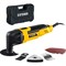 Универсальное устройство для разных строительных работ (резка, шлифование), особенно в труднодоступных местах. Большой угол колебаний 3 градуса в сочетании с широким спектром регулировки частоты обеспечивают эффективную работу с любым материалом. Расширенная комплектация включает в себя базовый набор насадок для начала работы сразу после покупки и удобный кейс для хранения и переноски. Предназначен для резки, пилки, шлифовки заготовок из дерева, металла, керамики, пластика и т.д.