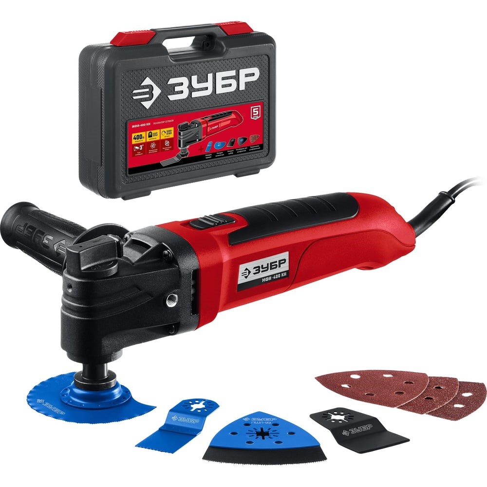 Реноватор 400 вт с набором насадок, ЗУБР МФИ-400 КН - универсальное устройство для разных строительных работ (резка, шлифование), особенно в труднодоступных местах. Большой угол колебаний 3 градуса в сочетании с широким спектром регулировки частоты обеспечивают эффективную работу с любым материалом. Расширенная комплектация включает в себя базовый набор насадок для начала работы сразу после покупки и удобный кейс для хранения и переноски. Применяется для резки, пилки, шлифовки заготовок из дерева, металла, керамики, пластика.