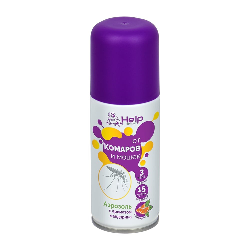 Аэрозоль от комаров и мошек HELP Цитрус репеллентный, 75 мл 80536 применяется для защиты от укусов летающих кровососущих насекомых (комаров, мокрецов, москитов, мошек, слепней и блох) при нанесении на открытые части тела, одежду, занавески, сетки и другие изделия из ткани. Обеспечивает максимально мощный и продолжительный эффект отпугивания насекомых на открытом воздухе за счет оптимальной концентрации действующего вещества.