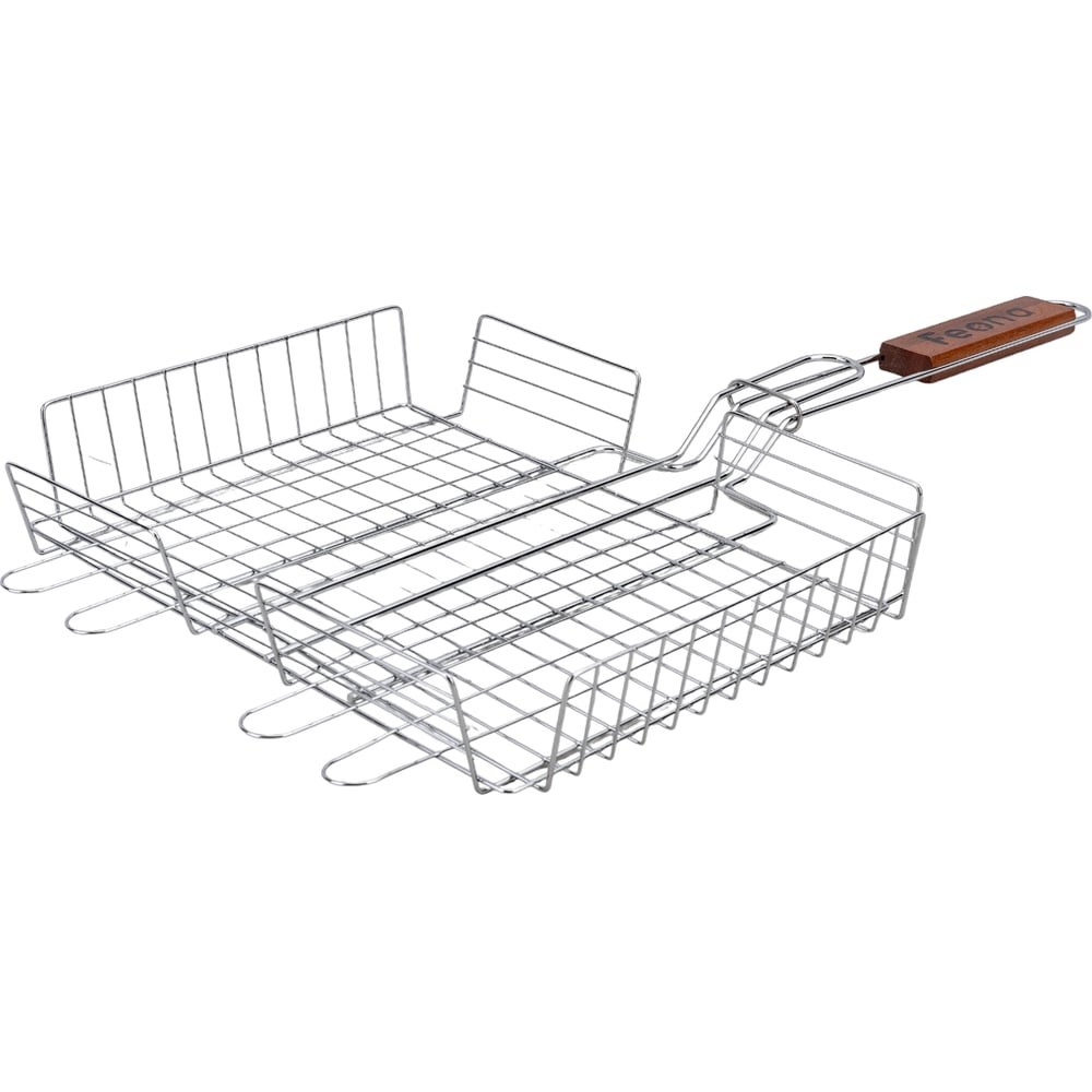 Решетка-гриль FEONA 31х24х5 СМ 140-0003 203608 предназначена для приготовления пищи на свежем воздухе. Изготовлена из хромированной стали, прослужит долгое время. Для удобного использования изделие имеет деревянную ручку.