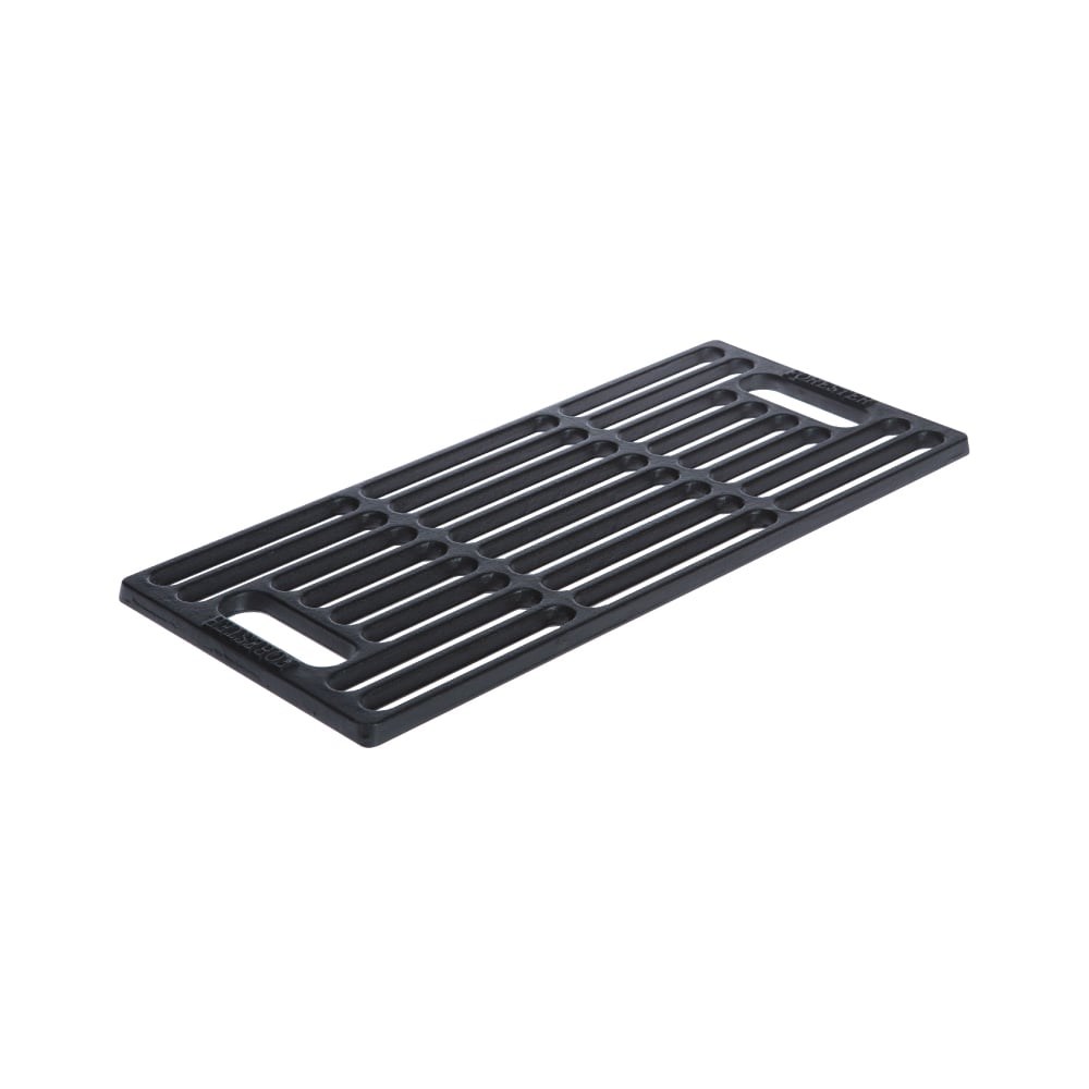 Решетка-гриль FORESTER CI-03 сделана из чугуна, не меняет свою форму при использовании и отличается долгим сроком службы. Имеет размер 43х20 см. Продукты не подгорают благодаря эмалевому антипригарному покрытию и равномерно прожариваются. Путем добавления нескольких решеток-гриль можно увеличить жарочную поверхность.