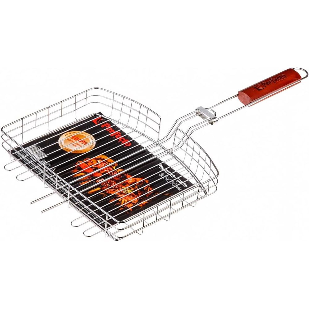 Решетка-гриль PERFECTO LINEA 305x230 мм, нержавеющая сталь 47-102115 используется для запекания мяса, птицы, рыбы и овощей. Изготовлена из нержавеющей стали, что делает ее безопасной для здоровья. Прочные стальные прутья от 2-х до 4-х мм толщиной делают решетку более долговечной, а металлические "усы", позволяют надежно разместить над источником тепла. Деревянная вставка на рукоятке предохранят от ожогов, удобна в руке и имеет эстетический привлекательный вид. Надежное кольцо-фиксатор предотвращает открытие решетки в процессе приготовления.