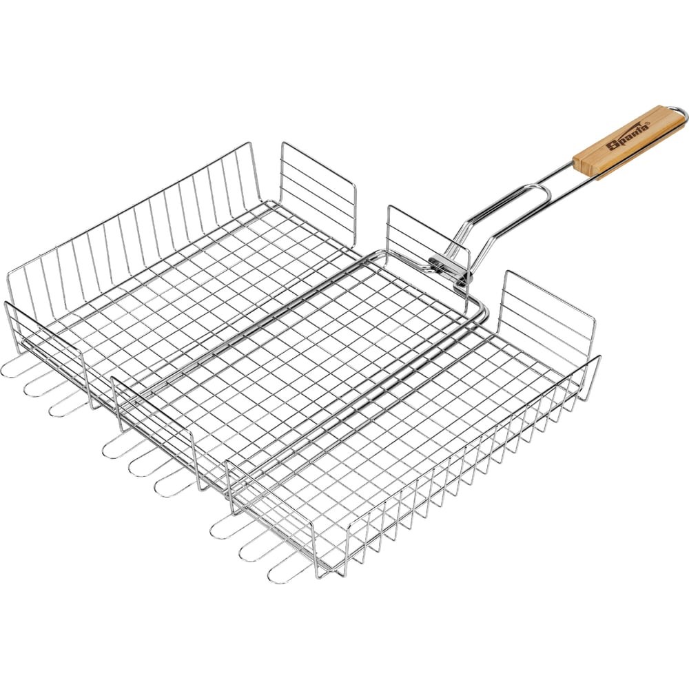 Объемная хромированная решетка-гриль Sparta 69561 размером 300 х 400 х 65 мм используется для удобного размещения продуктов и их приготовления на углях. С ее помощью мясо, рыба или овощи обжариваются равномерно с двух сторон, что позволяет получить вкусные блюда. За счет регулировки высоты решетки возможно приготовление продуктов любого размера без потери сока.