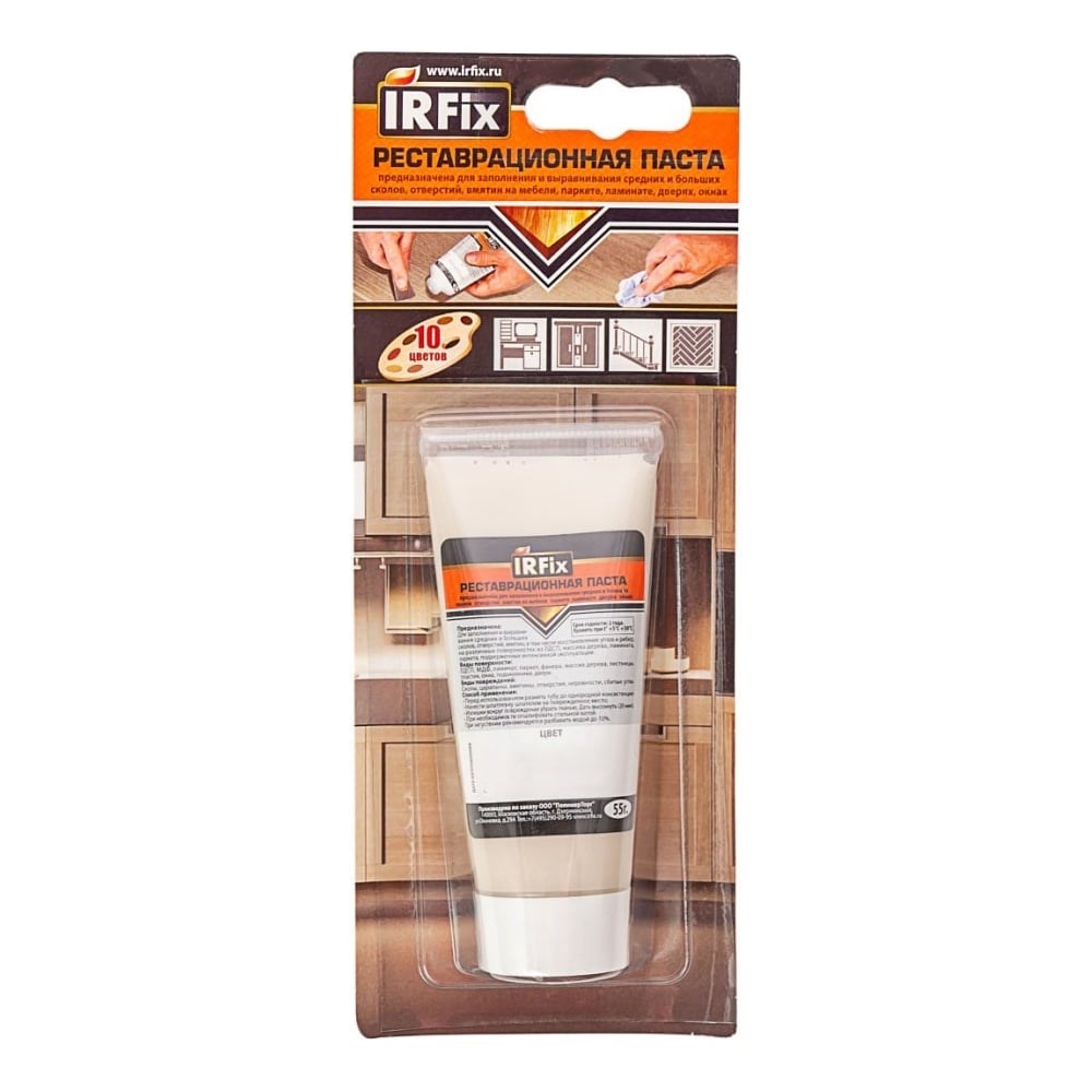 Реставрационная паста IRFIX 55 г, бук 20303 позволяет устранить сколы, вмятины и отверстия на поверхностях из дерева, ЛДСП, МДФ, фанеры и пластика. Также может использоваться для восстановления углов и ребер изделий. После застывания образует прочную износостойкую поверхность. Идеально подойдет для реставрации напольного покрытия.
