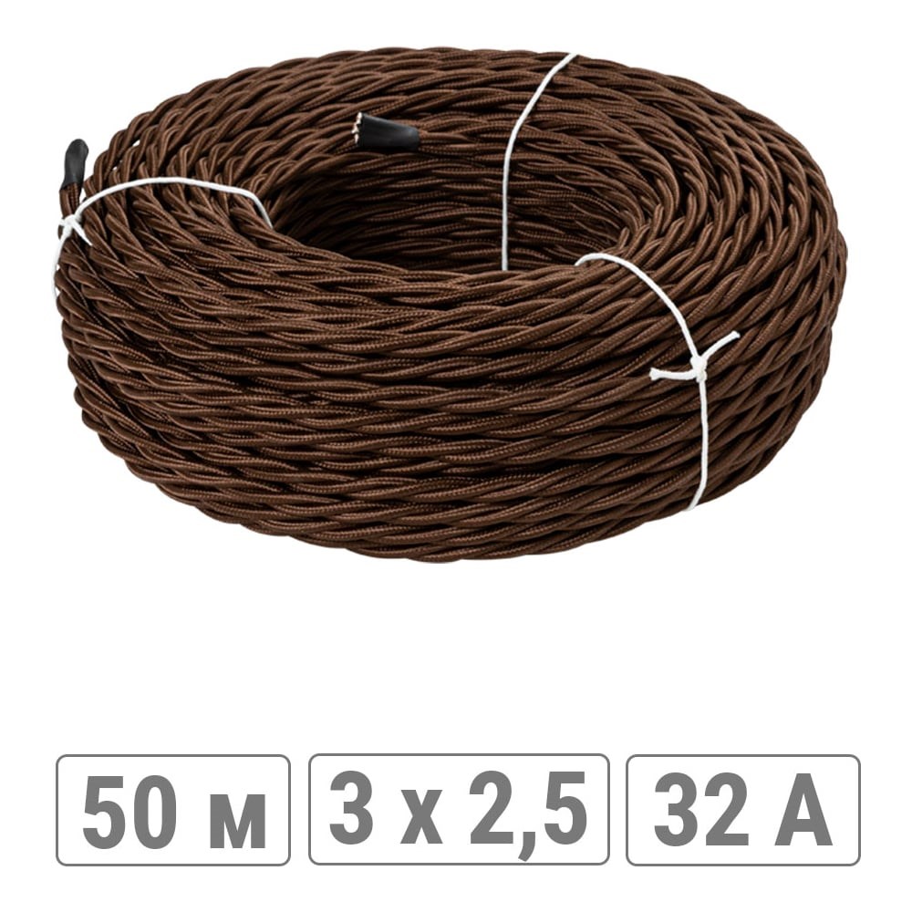 Ретро провод "Эко" 3х2,5 витой ГОСТ коричневый (50м) TDM ELECTRIC - это высококачественный силовой кабель, произведенный в России в соответствии с ГОСТ и стандартами качества. Особенностью данного провода является его применение в деревянных домах, где провода обычно не монтируются в стены. Это позволяет быстро и легко выполнить монтаж наружной проводки в стиле ретро, не дожидаясь усадки дома. Провод "Эко" имеет три жилы из меди, каждая из которых защищена полиэфирными нитями, что обеспечивает дополнительную защиту от механических повреждений. Материал изоляции - ПВХ, оболочка выполнена из ПВХ. Максимальная нагрузка составляет 6.0 кВт, а максимальное рабочее напряжение - 450 В. Кабель предназначен для наружного и внутреннего применения, а также может использоваться для ручной прокладки. Максимальная температура эксплуатации составляет 65 градусов, а минимальная -50 градусов. Цвет товара - коричневый, что позволяет гармонично вписать его в интерьер деревянного дома. Выбирая ретро кабель "Эко" 3х2,5 витой ГОСТ коричневый (50м) TDM ELECTRIC, вы получаете качественный и надежный продукт, который прослужит вам долгие годы.