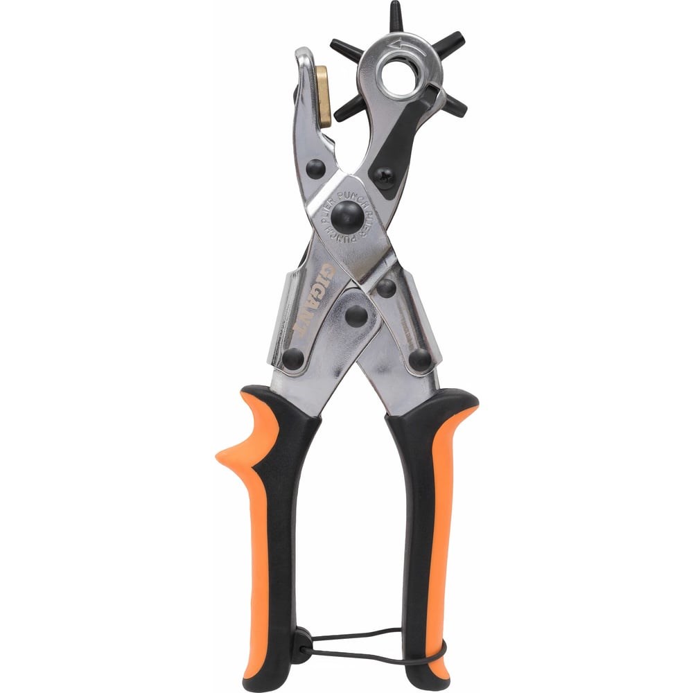 Револьверный дырокол для кожи Gigant 2-4,5мм GHT-24 также подойдет для резины, пластика и картона. Простой револьверный механизм позволяет быстро настроить нужный диаметр для пробивания отверстия. Инструмент выполнен из прочной стали.