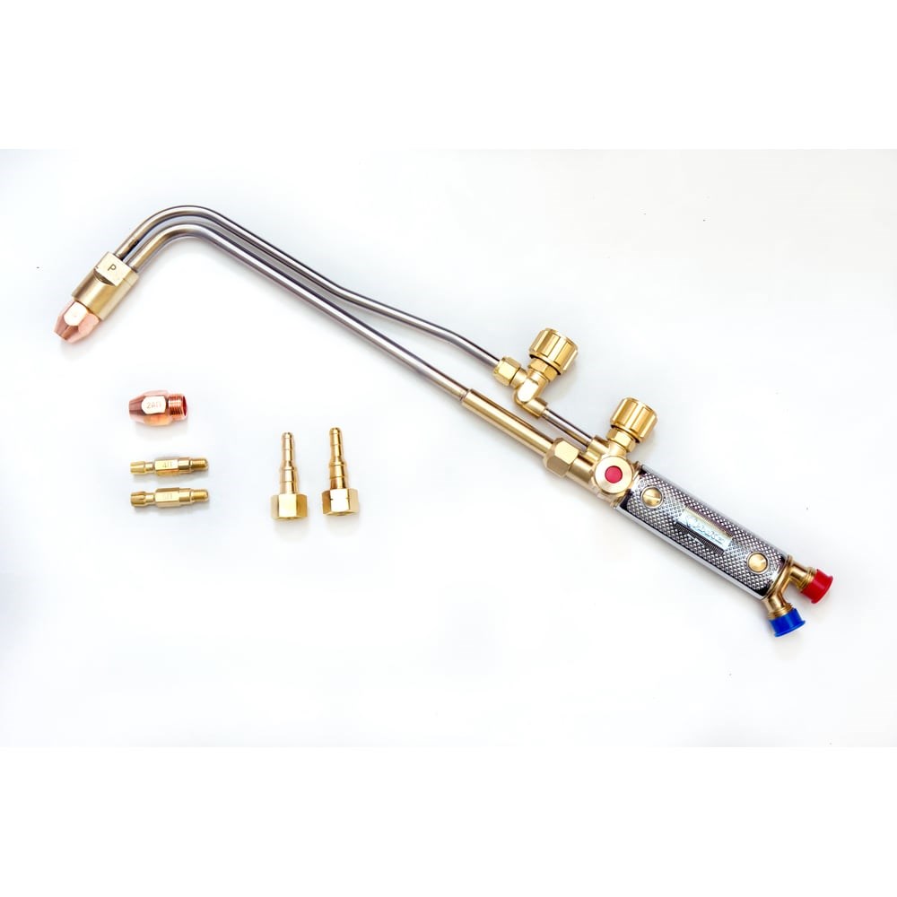 Газокислородный инжекторный резакпредназначен для ручнойгазокислородной разделительной резки нелегированных и низколегированных,низкоуглеродистых сталей толщиной до 200 мм.В качестве горючего газа применяется пропан-бутан в смеси с кислородомБлагодаря длине трубок работник всегда находится на безопасном расстоянии от зоны резки. Небольшой собственный вес облегчает удержание инструмента и позволяет работать дольше без усталости.