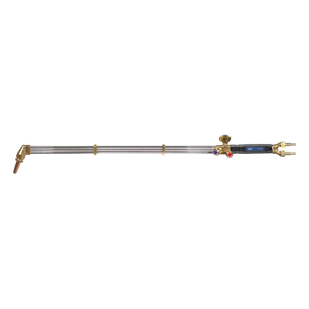 Резак ПТК Р3-345 ВУ L=900 мм, 110 градусов 00000021151 подходит для низкоуглеродистых сталей. Благодаря большому количеству различных ниппелей подойдет для металлов толщиной до 300 мм. Устройство одинаково эффективно режет с использованием ацетилена или пропана-бутана. Конструкция вентильного типа сохраняет стабильные пропорции смеси.
