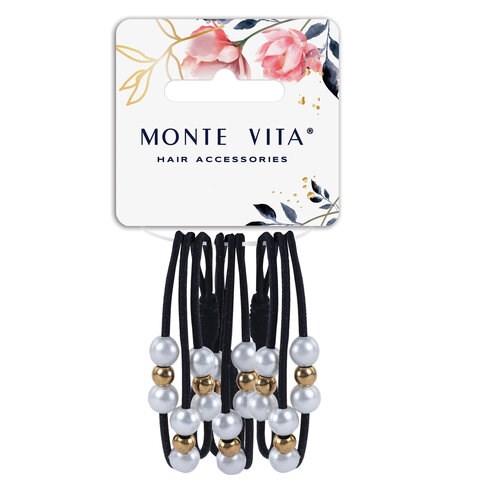 Резинки для волос НАБОР 3 шт., 0,2х14 см, с жемчужинами, чёрные, MONTE VITA (МОНТЕ ВИТА), 457053