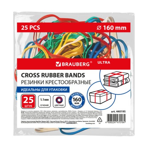 Резинки КРЕСТООБРАЗНЫЕ упаковочные, диаметр 160 мм, 25 шт., цветные, каучук, BRAUBERG, 440195