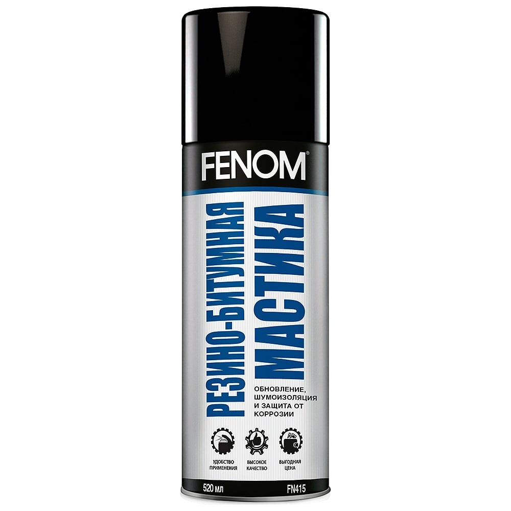 Резино-битумная мастика FENOM FN415 предназначена для обновления и восстановления заводского покрытия днища автомобиля и колесных арок кузова. Состав после высыхания образует однородный слой черного цвета с глянцевым блеском. Продукт обеспечивает эффективную защиту от ржавчины и улучшает шумоизоляцию. Мастику можно использовать для обработки любых металлических поверхностей, подверженных коррозии.