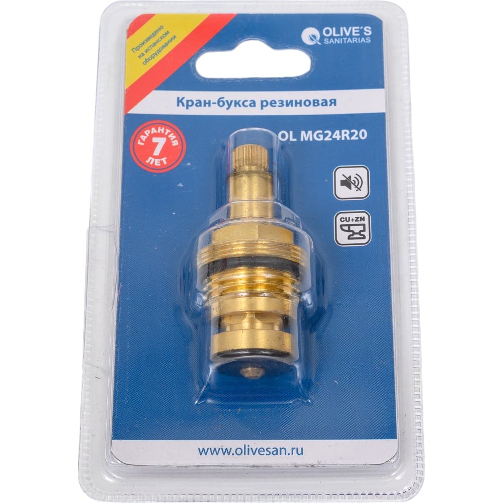 Кран-букса резиновая OLIVE'S OL MG24R20 подойдет для установки на такие модели смесителей OLIVE'S, как: 21110VG; 21201VG; 21221VG; 21430VG; 21431VG; 21432VG; 01100GR; 01110GR; 01201GR; 01221GR; 01430GR; 01431GR; 01410GR. Для изготовлении кран-буксы используется высококачественная латунь. Дополнительные технические характеристики: Кран-букса резиновая универсальная 1/2”. 20 шлицов. Угол поворота: 360°. Максимальное давление: 35 бар. Максимальная температура: 90°. Пропускная способность воды: 23 л/мин (при рабочем давлении 3 бар). Обязательна установка фильтров грубой очистки воды не более 100 мкм. Система подавления шума SILENT OLIVE’S гарантирует уровень шума менее 18 дБ. Гарантированная работа кран-буксы в течение 500 000 циклов открытия-закрытия.