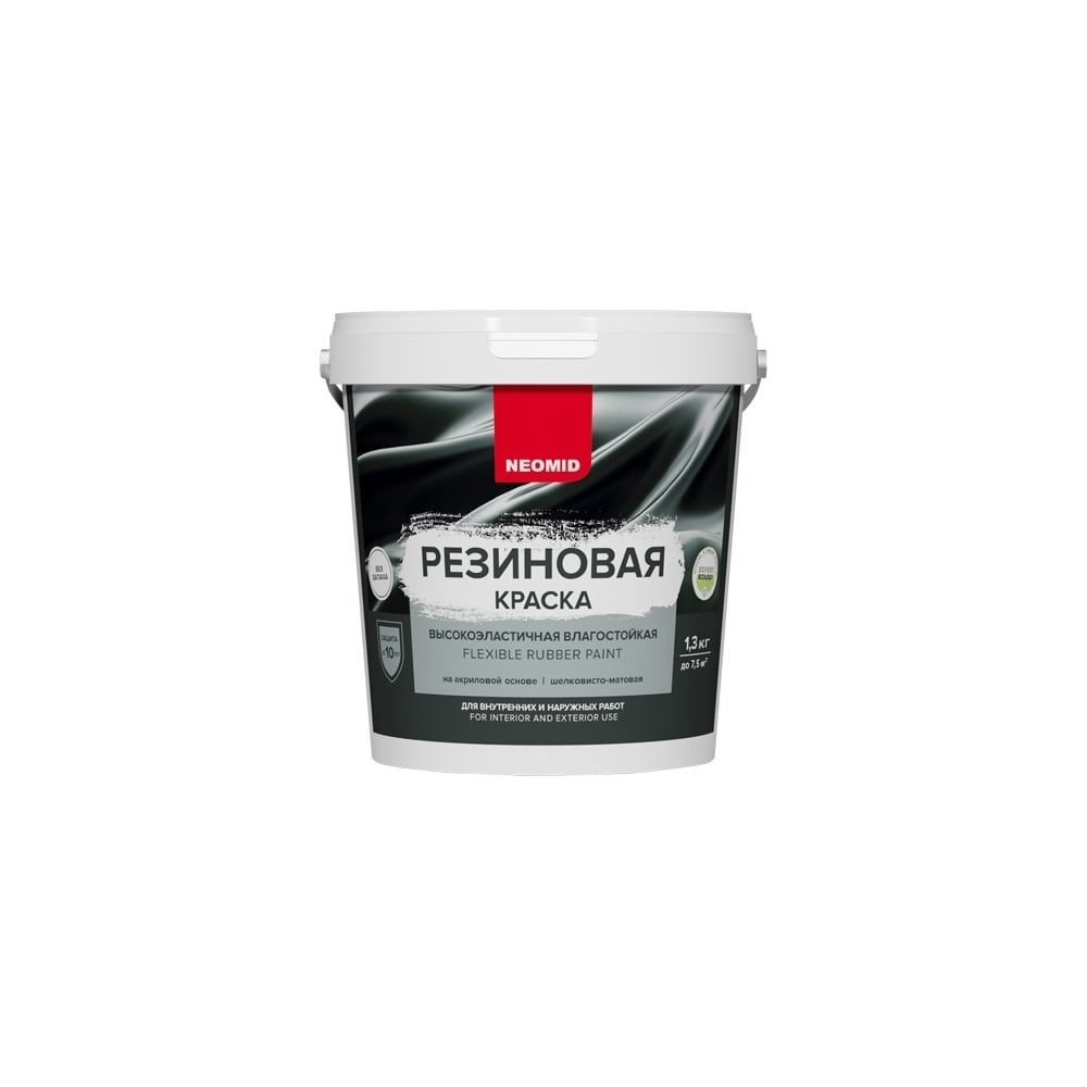 Резиновая краска Neomid база С 1,3 кг Н-КраскаРез-1,3-БазС предназначена для защитно-декоративного окрашивания крыш, водосточных систем, заборов, фасадов зданий, фундаментов, подоконников, откосов окон и бордюров. Продукт подходит для отделки стен, потолков и элементов интерьера внутри сухих и влажных помещений (кухня, ванная комната, подвал). Состав обладает хорошей адгезией к большинству материалов (шифер, черепица, профнастил, оцинкованное железо, бетон, газобетон, штукатурка, кирпич, гипсокартон, фанера, ДСП, ЦСП, ДВП, OSB, SIP-панели, загрунтованный черный металл, алюминий, пластик). Краска отличается эластичностью, высокой укрывистостью, устойчивостью к атмосферным воздействиям и мытью с применением неабразивных чистящих средств. Внимание! Не рекомендуется для окрашивания поверхностей, подверженных истиранию (пол, тротуарная плитка). Не предназначена для длительного контакта с водой (емкости для хранения воды, бассейны).