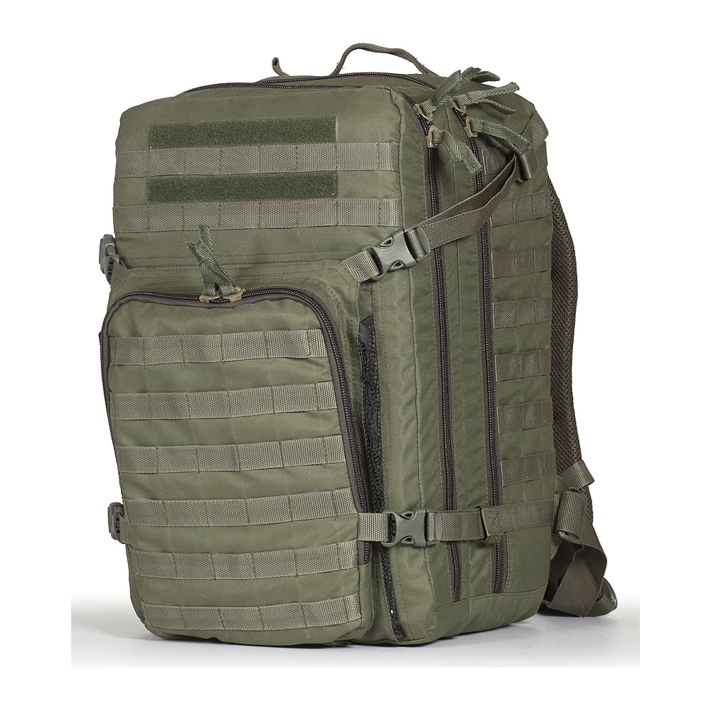 Рюкзак TAIFHUNTER Армада 17 РТ-0047-45и – вместительный тактический рюкзак увеличенного объема со съемным поясным ремнем. Рассчитан на использование в полевых условиях и в городе. Ребра жесткости на спине обеспечивают комфорт при движении. Съемная поясная стропа оптимально распределяет нагрузку в тазобедренной части. Рюкзак имеет широкие регулируемые лямки анатомической формы. Особенности модели: Два больших отделения на молнии Внутренние карманы в обоих отделениях Объемный фронтальный карман-книжка на фастексах и на молнии со стропами для внешней подвески Боковые компрессионные стяжки Стропы для внешней подвески на боковой части Ручка для переноски