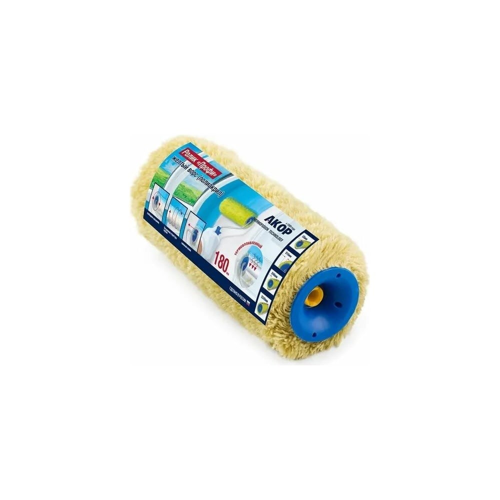 Ролик АКОР L180 мм, диаметр 8 мм, желтый ворс 18 мм, полиакрил 4607044331495 подходит для нанесения краски на водной основе, латексных, акриловых красок, грунтовок и эмалей. Ролик создает гладкую поверхность, отлично лакирует и прокрашивает. Шубка выполнена из качественного полиакрила, благодаря чему отличается высокой производительностью. Ролик легко закрепляется на рукоятке.