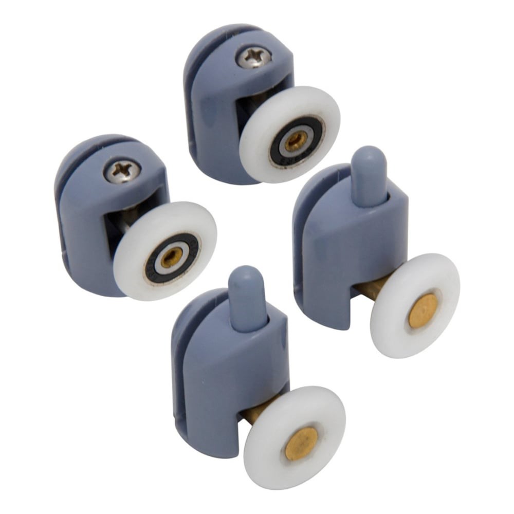 Ролики для душевой кабины MasterProf 23мм, 4 шт, одинарные ИС.131345 - комплект сменных натяжных роликов для душевой кабины. Два одинарных подвесных (верхних) ролика с регулировочным винтом по высоте и два одинарных подпружиненных нижних ролика.Корпус выполнен из АБС-пластикаD ролика 23 мм.D отверстия в стекле 12 мм.Вынос от центра ролика до центра стекла 20 мм.Высота от края стекла до центра отверстия 20 мм.Толщина стекла душевой кабины 4-6 мм.
