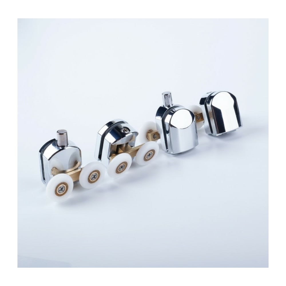 Ролики IDDIS 2 верхних, 2 нижних, двойные, D=23 мм, хром, стекло 5-6 мм 966D23C6DZ подходят для стекол толщиной 5-6 мм. Каждый ролик имеет два колесика диаметром 23 мм, снабженные подшипниками для более мягкого хода. Это обеспечивает плавное и тихое движение дверок при открытии и закрытии – для комфортного ежедневного использования. Легко устанавливаются: верхние при помощи отвертки, нижние фиксируются кнопкой. Изготовлены из прочного ABS-пластика и надежной латуни, что гарантирует долгий срок службы и защиту от коррозии, влажности и скачков температур. Имеют хромированное покрытие.