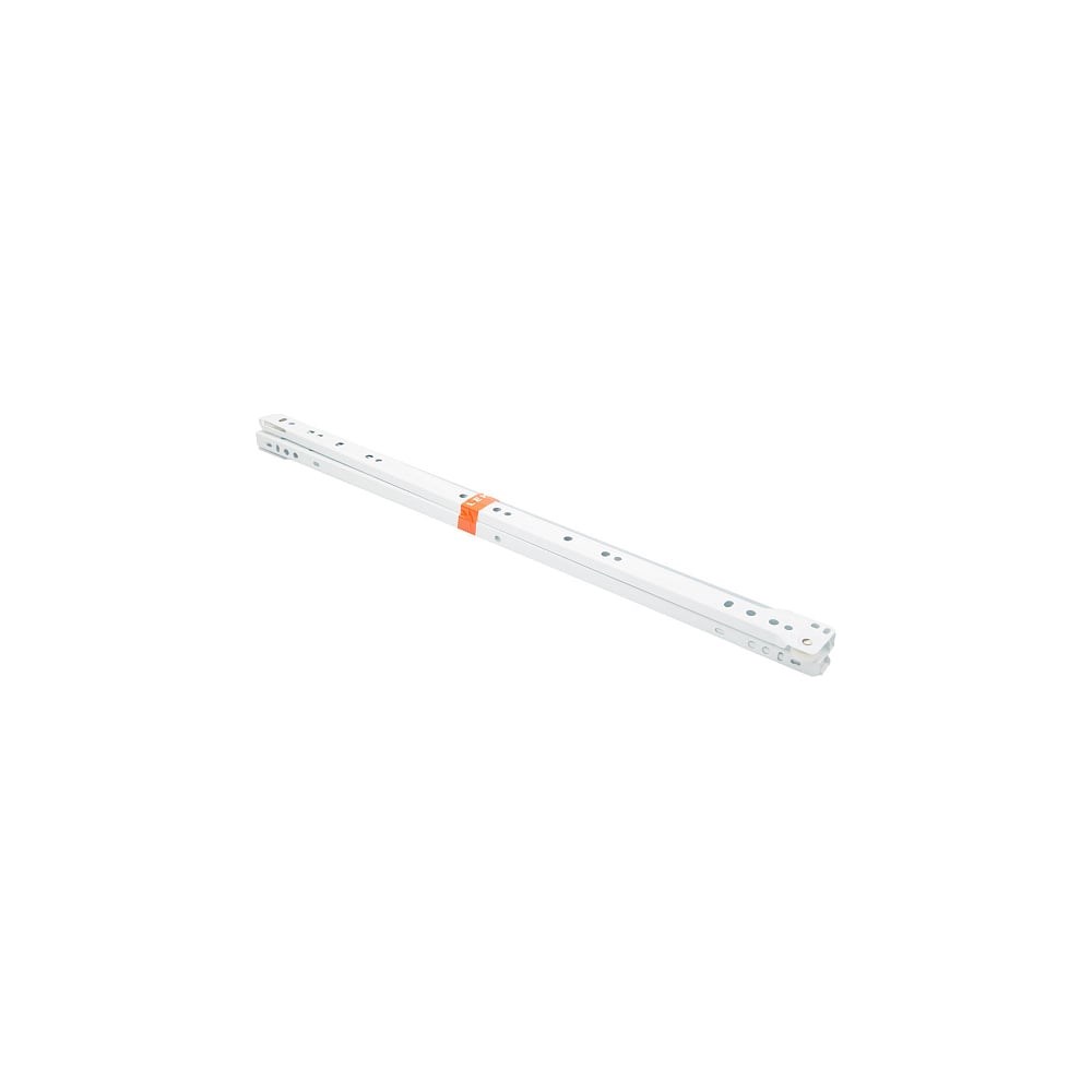 Комплект роликовых направляющих для выдвижных ящиков. Состоит из двух пар направляющих белого цвета, жестко крепящихся к выдвижному ящику и корпусу мебели с двух сторон. Обеспечивают плавный ход без потребности в смазке и необходимости сверления отверстий для монтажа. Отсутствие скрытых выдвижных механизмов делает монтаж направляющих простым, а установку и выдвижение ящика быстрым и удобным. Максимальная нагрузка - 10 кг. Высота - 25 мм, длина - 500 мм.