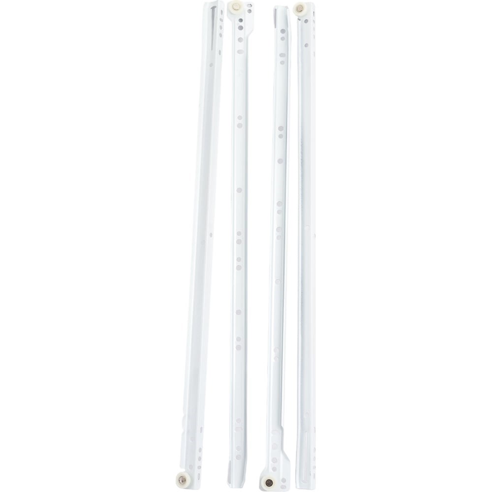 Комплект роликовых направляющих для выдвижных ящиков. Состоит из двух пар направляющих белого цвета, жестко крепящихся к выдвижному ящику и корпусу мебели с двух сторон. Обеспечивают плавный ход без потребности в смазке и необходимости сверления отверстий для монтажа. Отсутствие скрытых выдвижных механизмов делает монтаж направляющих простым, а установку и выдвижение ящика быстрым и удобным. Максимальная нагрузка - 10 кг. Высота - 25 мм, длина - 600 мм.