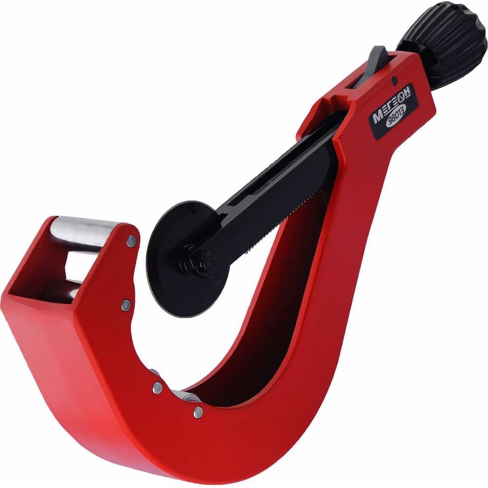 Роликовый труборез МЕГЕОН 98013 к0000023057 - это высокоэффективный роликовый инструмент, предназначенный для резки водопроводных труб из металлопласта (PAP) и полипропилена (PPB, PPH, PPR), имеющих наружный диаметр от 50 до 120 миллиметров. Прост в использовании, не имеет острых кромок и полностью безопасен. При работе нужен минимум усилий. Изготовление упорных роликов с применением подшипников скольжения, а режущего из инструментальной стали значительно увеличивает их срок службы. Лёгкий, прочный, алюминиевый, литой корпус обеспечивает беспрецедентную надёжность. Небольшой шаг нажимного винта и удобная рукоятка позволяют очень точно дозировать подачу при резке. Храпово-возвратный механизм ускоряет процесс. Форма оптимизирована под быстрый перехват для меньшей усталости рук. Труборез незаменим в качестве помощника при монтаже и ремонте систем отопления и водоснабжения.