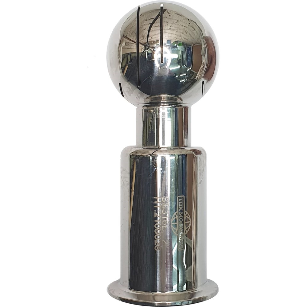 Ротационная вращающаяся щелевая моющая головка ТПК «Московия» ГМК- 2"-316L применяется в мойке баков, резервуаров и ёмкостей. Моющая головка данного типа для присоединения имеет кламп. Рабочее давление 2-3 бар. Она изготовлена из нержавеющей стали AISI 316L. Радиус очистки 360 градусов. Максимальная температура среды 140° C.D шара - 63,0 мм; L - 165,0 мм;øD - 64,00 ммРадиус распыления - 2,50 мРадиус очистки - 1,50 мРасход - 15,00 м³/ч