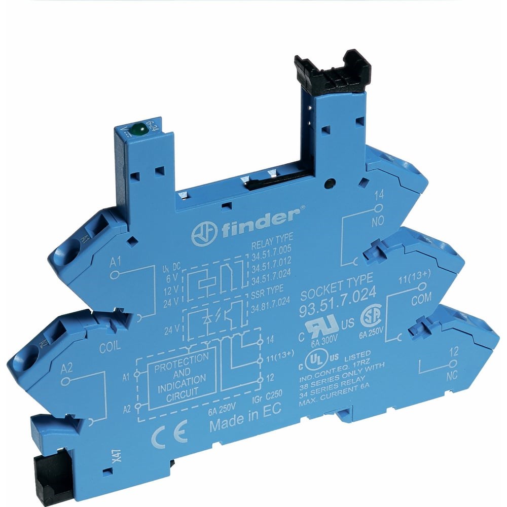 Дополнительные характеристики розетки для реле 34.51 Finder с пружинными зажимами; 6А; 12-24В AC/DC 93510024: Род тока - DC. Тип реле - 34.51. Ток - 6 А. Изоляция - 6 кВт. Длина зачистки провода - 10 мм. Фото товара является условным, актуальные данные указаны в технических характеристиках.