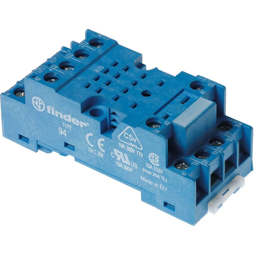 Дополнительные характеристики розетки Finder для реле 55.32, 85.02 и модуля 99.01 с комб конт., с метал фикс, 9472SMA: SM - металлический удерживающий зажим. Тип таймера - 85.02. Электрическая прочность - 2 кВ AC. Ток - 10 А. Момент затяжки - 0,5 Нм. Длина зачистки провода - 8 мм.