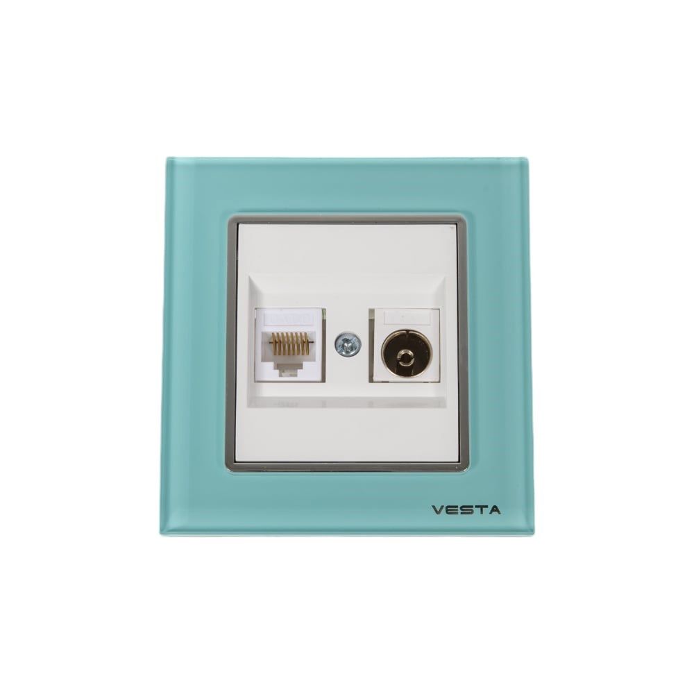 Розетка Metronex-Electric Exclusive Blue для сетевого кабеля LAN + TV FRZTV010002BLU в рамке из закаленного стекла. Рамка из закаленного стекла нежно-голубого цвета идеально впишется в любой интерьер и придаст шарм утончённости и дороговизны. Основание изготовлено из огнестойкого, электробезопасного полиамида, серебряные контакты исключают образование дуги нагара и залипания контактных групп.