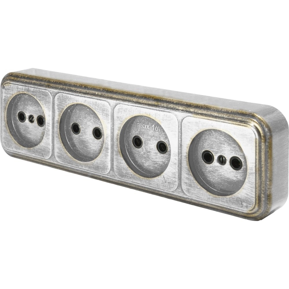 Розетка duwi о/п б/з 4-местная серия Palazzo, белое золото патина 26440 8