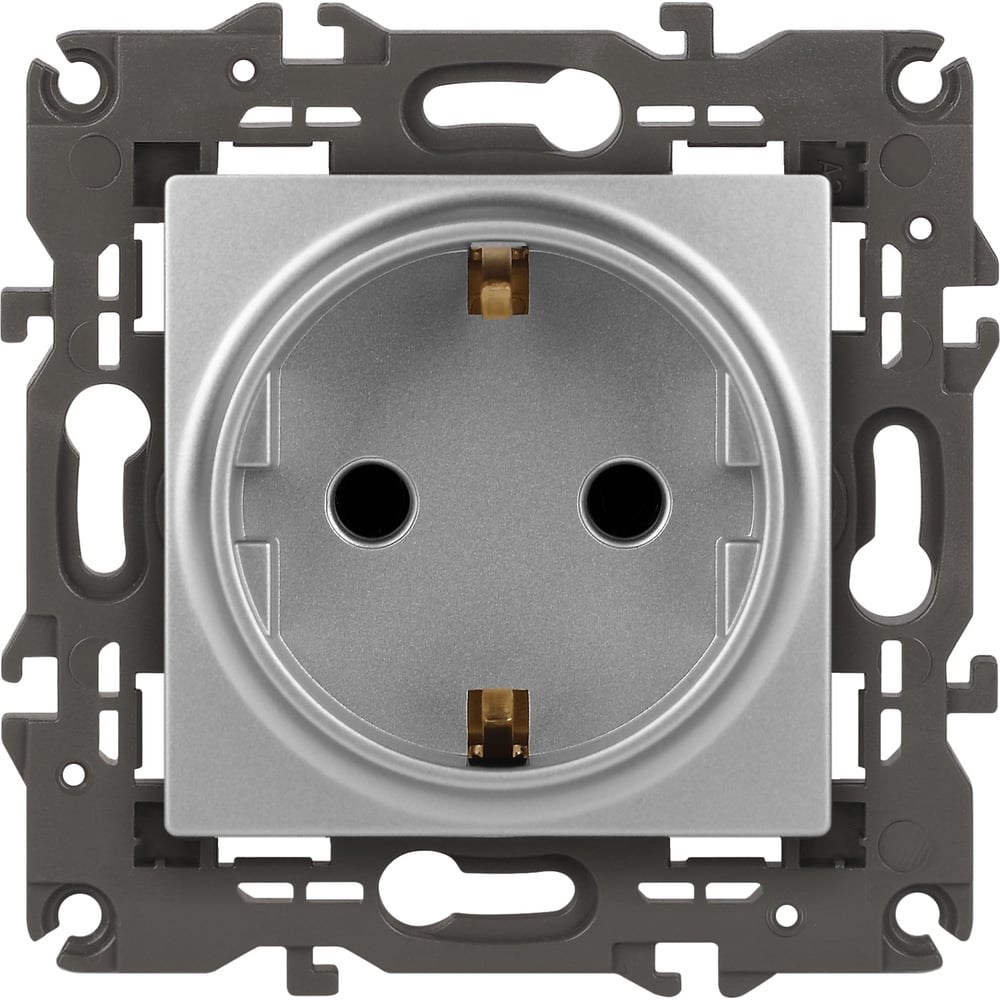 Розетка ЭРА Elegance 2P+E Schuko, 16A-250В, IP20, алюминий 14-2101-03 Б0034266 оснащена автоматическими клеммами для надёжной фиксации жил кабеля в механизме. Рамки приобретаются отдельно.
