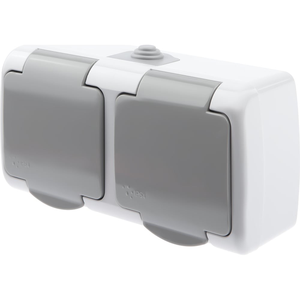 Розетка Intro Atlantic 5-203-03 двойная с заземлением Schuko 16А открытой установки серый Б0051060