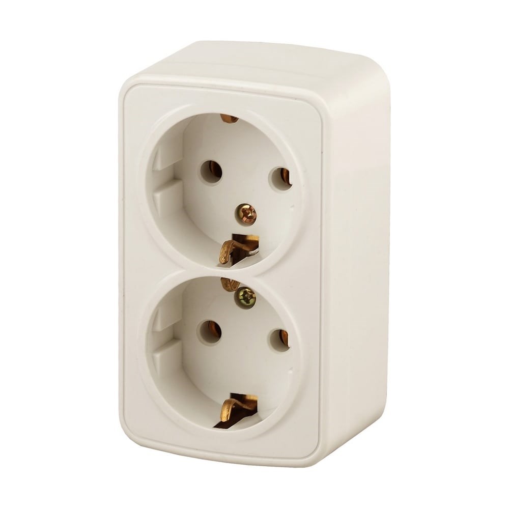 Розетка Intro 320402 2х2PE Schuko,16А, 250В, IP20, ОУ, Polo, слоновая кость Б0036131 выполнена из термопласта, стали и латуни, оснащена винтовыми зажимами.