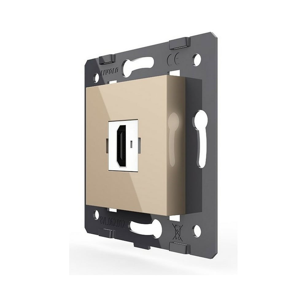 Механизм розетки HDMI 2.0 LIVOLO VL-FCHD-2AP золотого цвета используется для подключения к нему с обоих сторон разъёма HDMI по принципу ON/ON (мама-мама). HDMI (High-Definition Multimedia Interface) - интерфейс для мультимедиа высокой чёткости, позволяющий передавать цифровые видеоданные высокого разрешения и многоканальные цифровые аудиосигналы с защитой от копирования по одному единственному кабелю. Разъём HDMI является современной заменой аналоговых.Разъем оснащен 19 контактами и позволяет передавать изображение разрешением 1920 × 1080.ЭксплуатацияПодсоедините кабель HDMI к механизму.КомплектацияМеханизм розетки.Металлический суппорт для крепления.БЕЗ стеклянной рамки. Приобретается отдельно.МонтажДостаньте комплектующие из упаковки.Зафиксируйте механизм в металлическом суппорте.Подсоедините кабель HDMI к задней части механизма.Установите механизм в монтажной коробке (подрозетнике) с помощью винтов.Установите стеклянную лицевую рамку.Примечание: установка осуществляется в монтажную коробку (подрозетник) с минимальной глубиной 40 мм и диаметром 62-70 мм. Межцентровое расстояние для крепёжных винтов должно составлять не менее 60 мм.Меры предосторожностиПотребитель несет ответственность за любой личный и имущественный ущерб, возникший в результате неправильного использования продукта в соответствии с руководством пользователя.Следует избегать интенсивных физических действий, включая стуки, бросания, топтание, сдавливание и т. д.