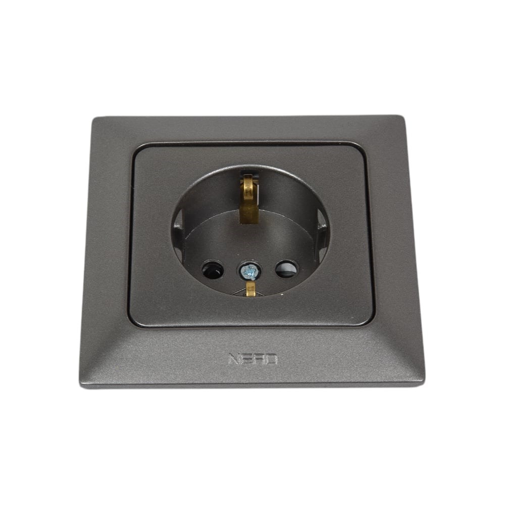 Розетка NE-AD с защитой от детей, с заземлением, 16А, 250В, Aras, Графит, 93-121-08-E
