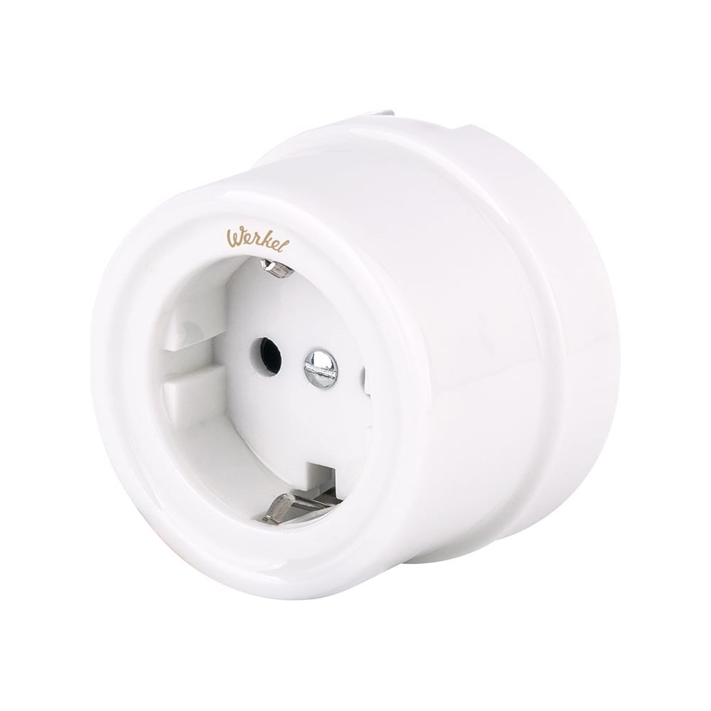 Ретро розетка с заземлением W5771012 220 В 16 A в белом цвете является необходимым элементом в любом помещении и предназначена для подключения к электрической сети различных приборов. Такие электроустановочные изделия используются в квартирах, частных домах, коммерческих помещениях и устанавливаются в наиболее доступных местах для комфортного использования. Накладной механизм не требует дополнительных работ по монтажу отверстий и его можно устанавливать на любые поверхности. Механизм имеет удобное подключение проводов с сечением от 0.75 мм кв до 2.5 мм кв, осуществляемое с помощью винтовой клеммы. Металлический корпус с гальваническим покрытием обладает высокой механической прочностью и термической стойкостью. Накладная розетка совместима со всеми ретро рамками из коллекций Werkel™, характеризуется удобством использования и имеет эстетический внешний вид.
