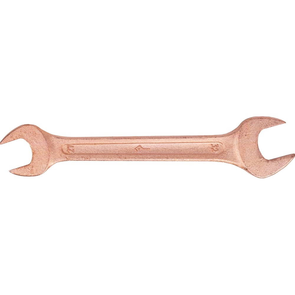 Двусторонний гаечный ключ предназначен для работ с резьбовыми соединениями в процессе ремонтных и монтажных работ. Инструмент выполнен из высококачественной стали, благодаря чему отличается прочностью и долговечностью. Омедненное покрытие обладает повышенной устойчивостью к высокотемпературному воздействию случайной искры. Ключ может применяться на предприятиях с наличием потенциально опасных сред, а также в быту.