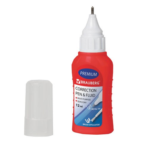 Ручка-корректор + корректирующая жидкость BRAUBERG, 12 мл, 2 в 1: металлический наконечник + кисточка, 225217