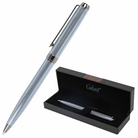 Корпус покрыт гравировкой и увеличивается к торцевой части. Клип позволяет фиксировать ручку на ежедневниках, блокнотах и карманах одежды. GALANT "Ando" оснащена поворотным механизмом, внутри которого расположен стержень. Диаметр наконечника составляет 0,7 мм, то есть ручка идеально подходит для быстрого стиля письма. Упакована в подарочный футляр.