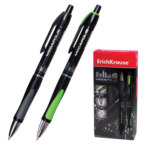 Ручка шариковая автоматическая ERICH KRAUSE "Megapolis Concept", ЧЕРНАЯ, корпус черный, узел 0,7 мм, линия письма 0,35 мм, 32