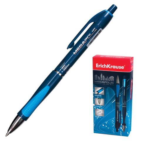 Ручка шариковая автоматическая ERICH KRAUSE "Megapolis Concept", СИНЯЯ, узел 0,7 мм, линия письма 0,35 мм, 31