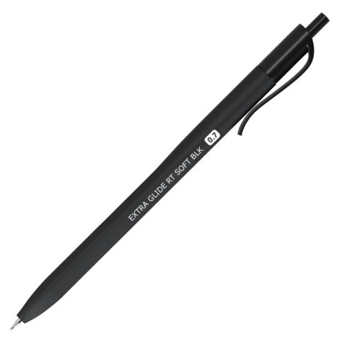 Ручка шариковая масляная автоматическая BRAUBERG "Extra Glide RT SOFT BLK" представлена в трехгранном корпусе черного цвета, дополненном мягким покрытием Soft-Touch, что обеспечивает ее особое комфортное положение в руке при письме. Технология мягкого письма "FEEL INK". Чернила имеют масляную основу и ультрапониженный уровень вязкости, благодаря чему ложатся на бумагу мягко и плавно. Тонкая линия письма толщиной 0,35 мм создается за счет игольчатого наконечника диаметром 0,7 мм. Синий цвет чернил делает ручку универсальной как для учебы, так и для работы.