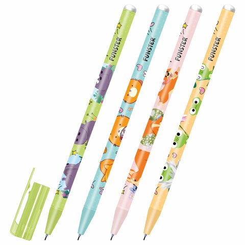 Ручка стираемая гелевая с принтом FUNSTER (ФАНСТЕР) "CUTE ANIMALS", СИНЯЯ, корпус ассорти, игольчатый наконечник 0,5 мм, линия 0,35мм 144410