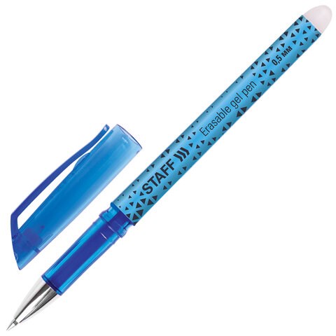Ручка стираемая гелевая STAFF "College GP-199", СИНЯЯ, хромированные детали, узел 0,5 мм, линия письма 0,35 мм, 142494