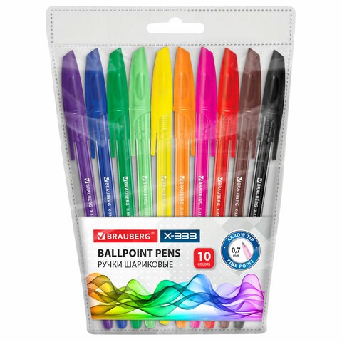 Ручки шариковые BRAUBERG "X-333", НАБОР 10 цветов, узел 0,7 мм, линия 0,35 мм, 144251