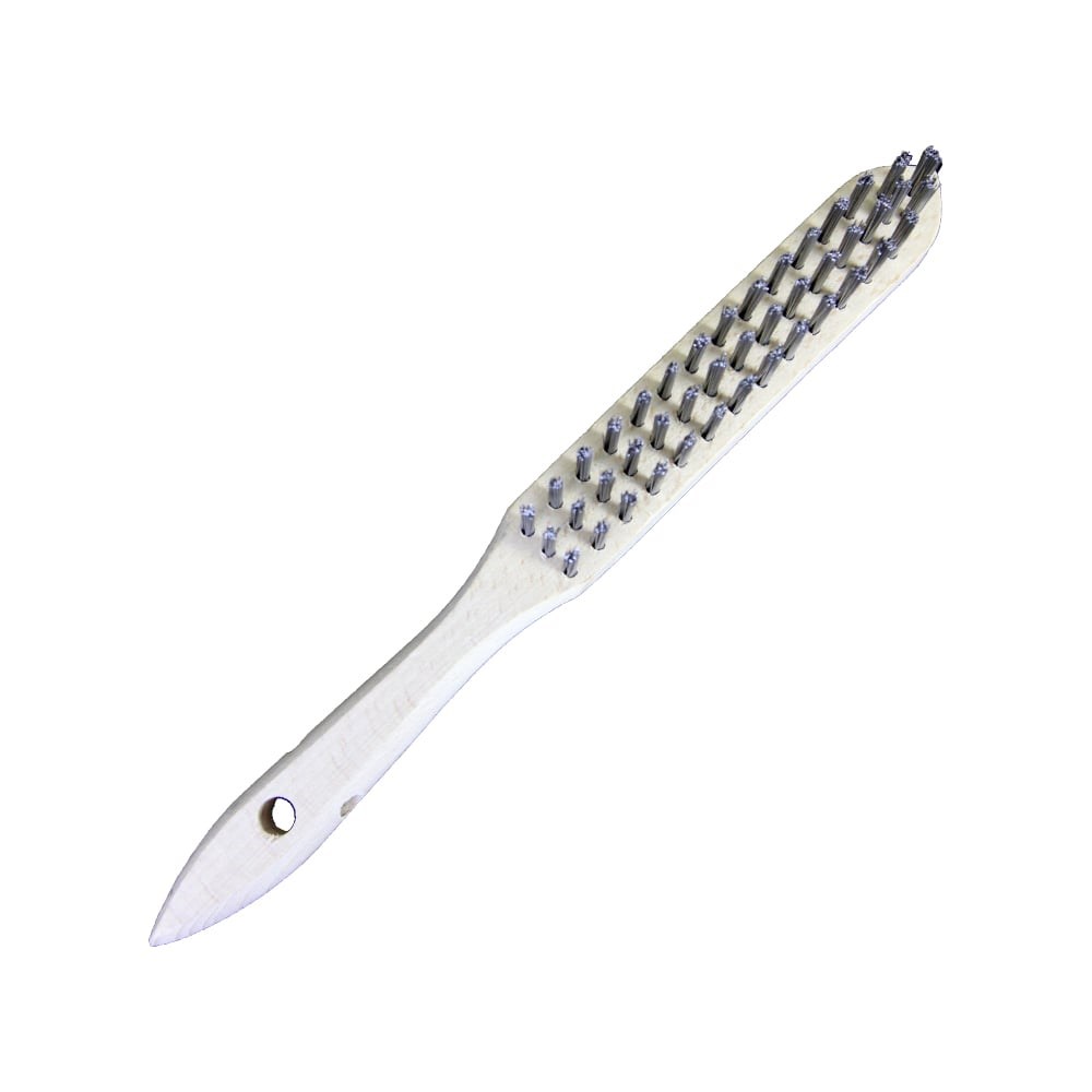 Ручные щетки предназначены для обработки металла, камня, бетона, дерева и других материалов. В основном применяются для зачистки от старой краски, удаления ржавчины, обработки сварных швов и т.п. работ. Ворс из прямой стальной проволоки диаметром 0,35 мм высоко агрессивен в работе. Материал корпуса: дерево Форма ручки: прямая Кол-во рядов ворса: 3 Длина корпуса L (мм): 295 Длина рабочая A (мм): 145 Материал ворса щетки: сталь черная Диаметр ворса (мм): 0,35 Тип (форма) ворса: прямой Длина ворса T, S (мм): 25